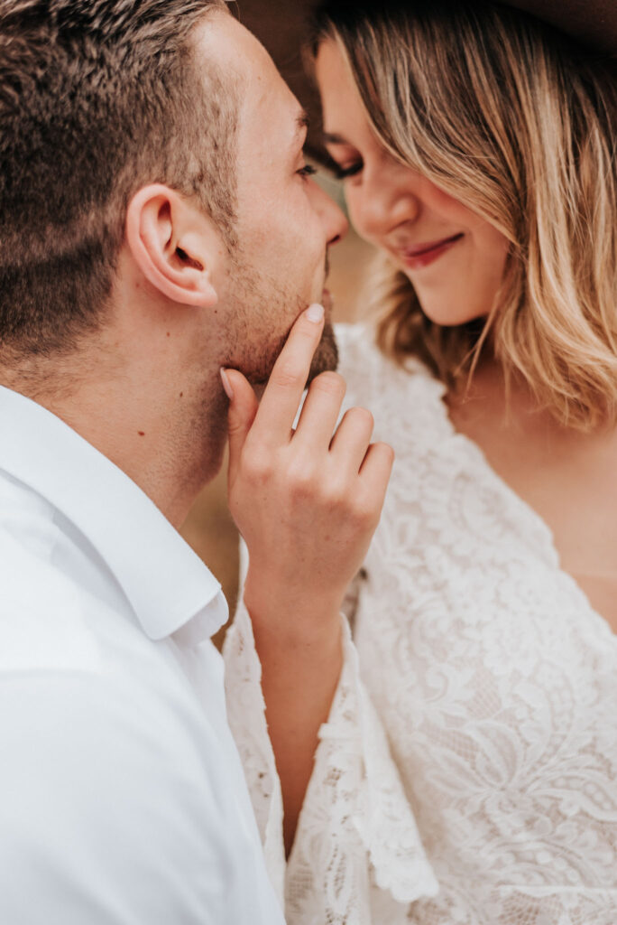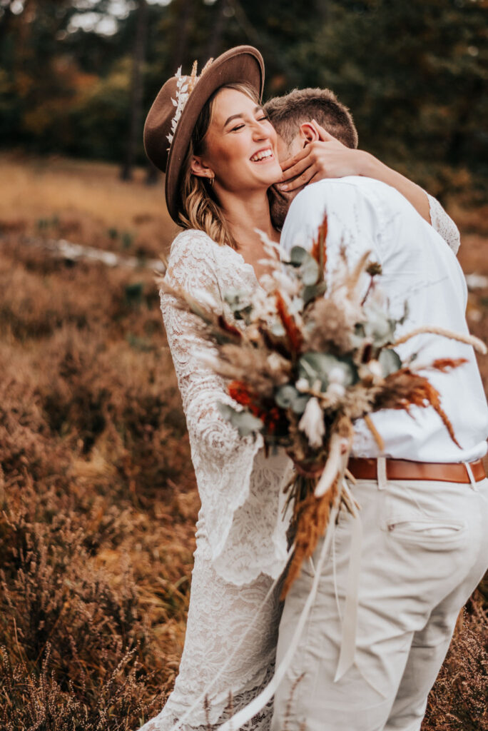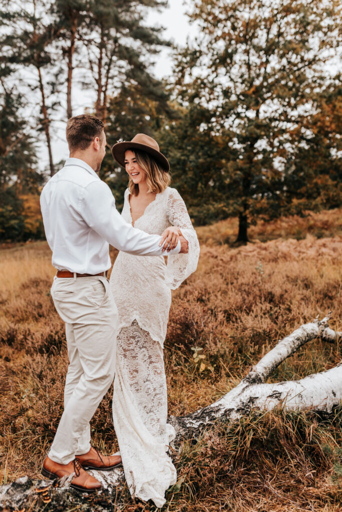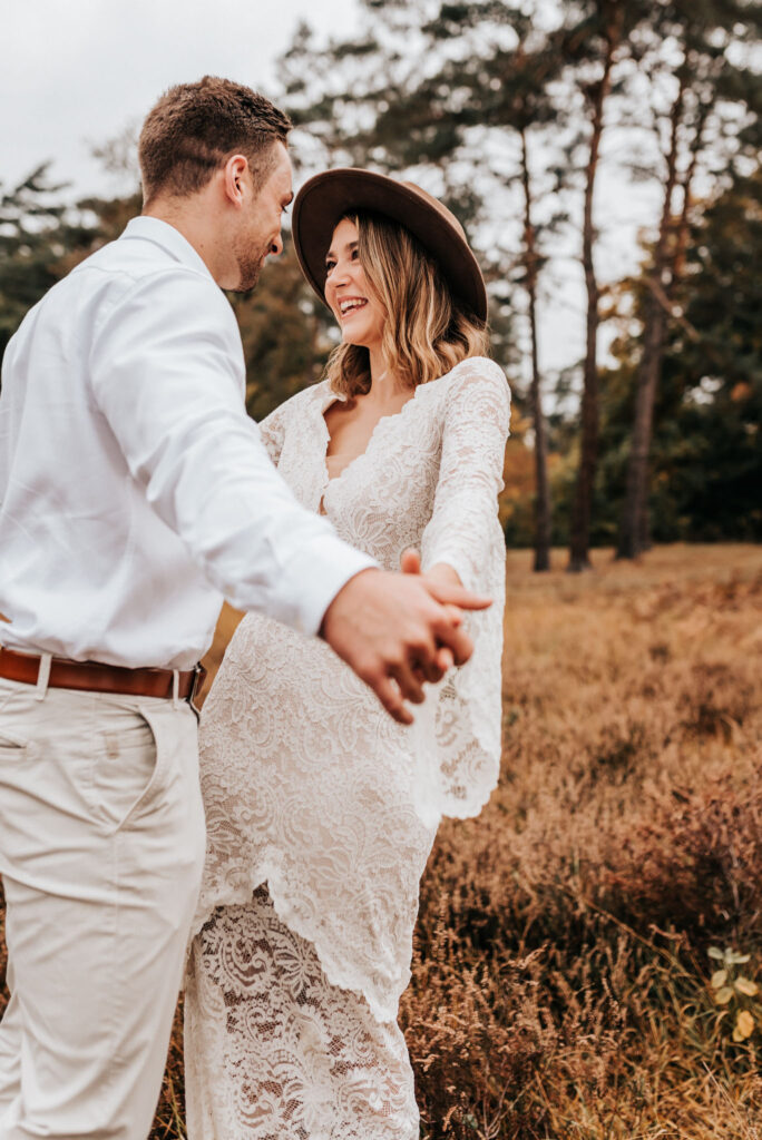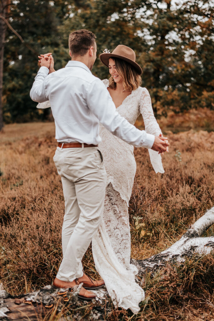 Die Bilder im Gewächshaus, während der Regen auf die vielen Glasscheiben prasselte, sind einmalig geworden. Julia und Lukas haben sich die ganze Zeit über wohlgefühlt und genossen das Flair der Umgebung. Wir waren im Flow. Später ging es dann noch in die Heide, wo nicht nur tolle Landschaftsaufnahmen entstanden, sondern sich die zwei Liebenden nochmal ganz anders und völlig frei entfalten konnten. Hier zeigte sich nicht nur Liebe, sondern auch ein Einklang mit mir als Fotografin.