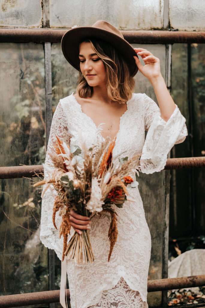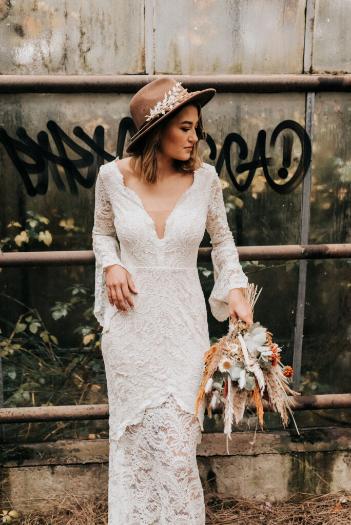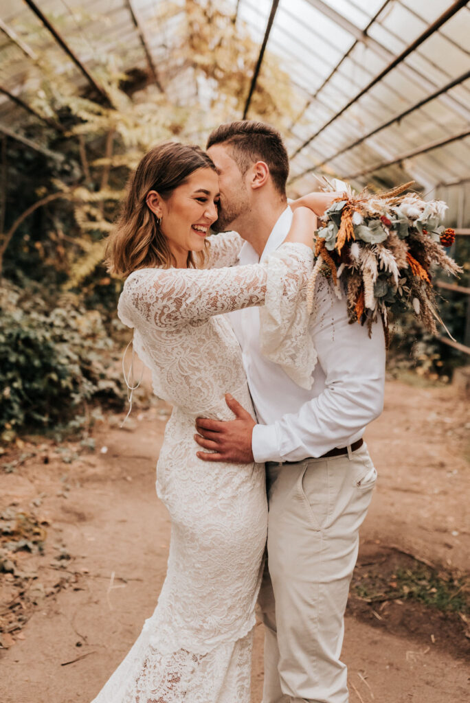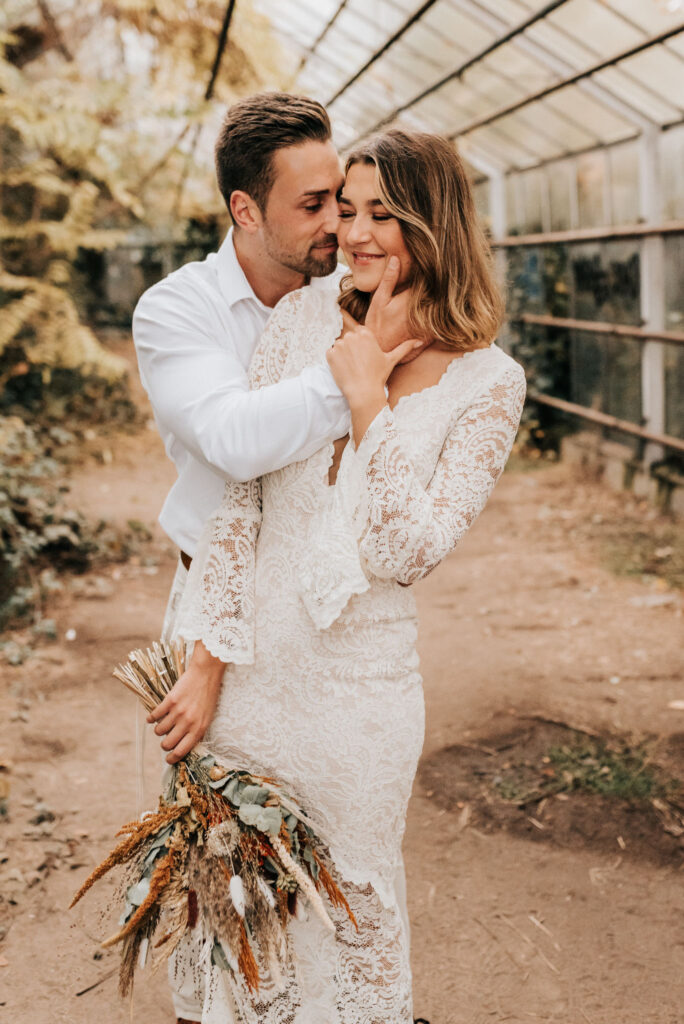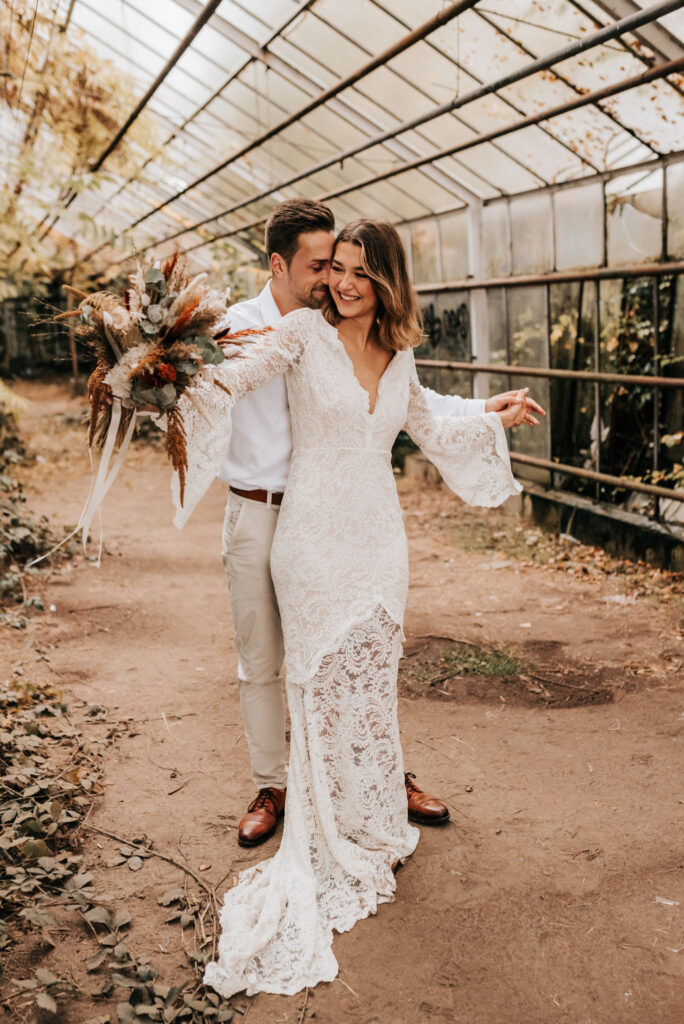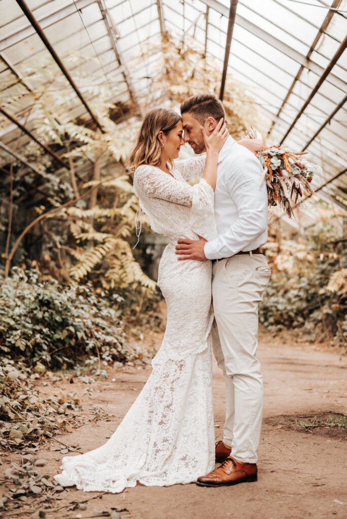 Bei einem meiner Fotostreifzüge durch Köln entdeckte ich etwas abgelegen ein altes kaputtes Gewächshaus. Die Idee, dort zu shooten war geboren und mit diesen zwei wunderbaren Menschen auch ein professionelles Paar gefunden, das eine solche Location unbedingt für seine Fotos nutzen wollte. Da das Wetter am Tag des Shootings sehr wechselhaft war, nutzen wir für die Aufnahmen jede trockene Minute, um vor dem Gewächshaus zu fotografieren.