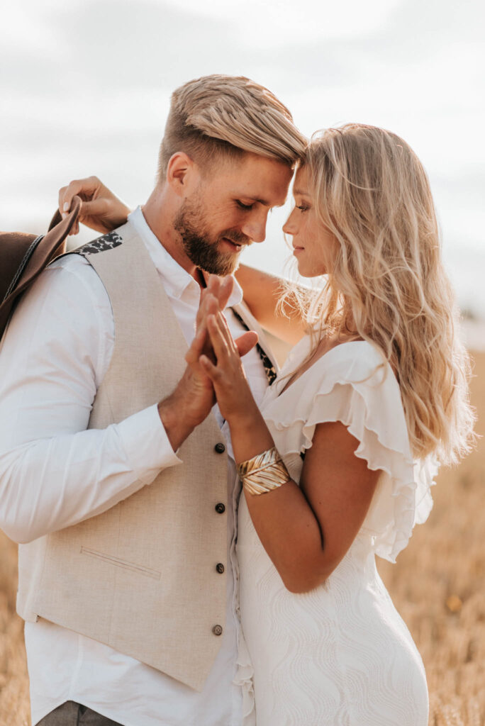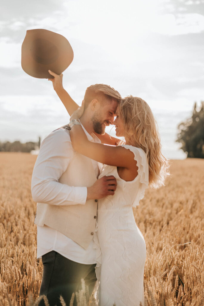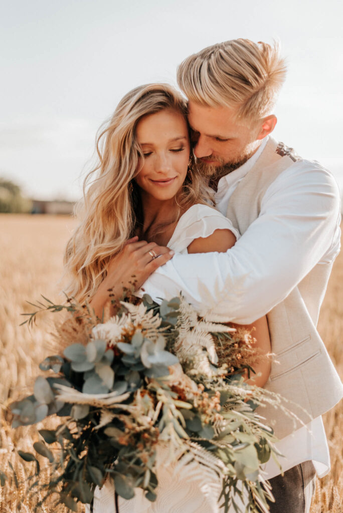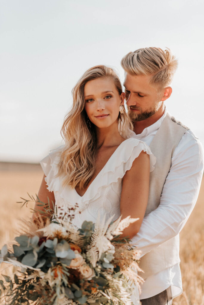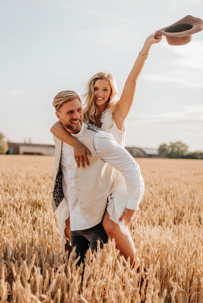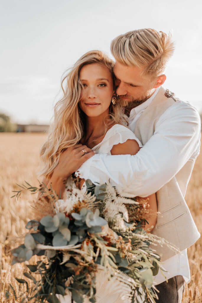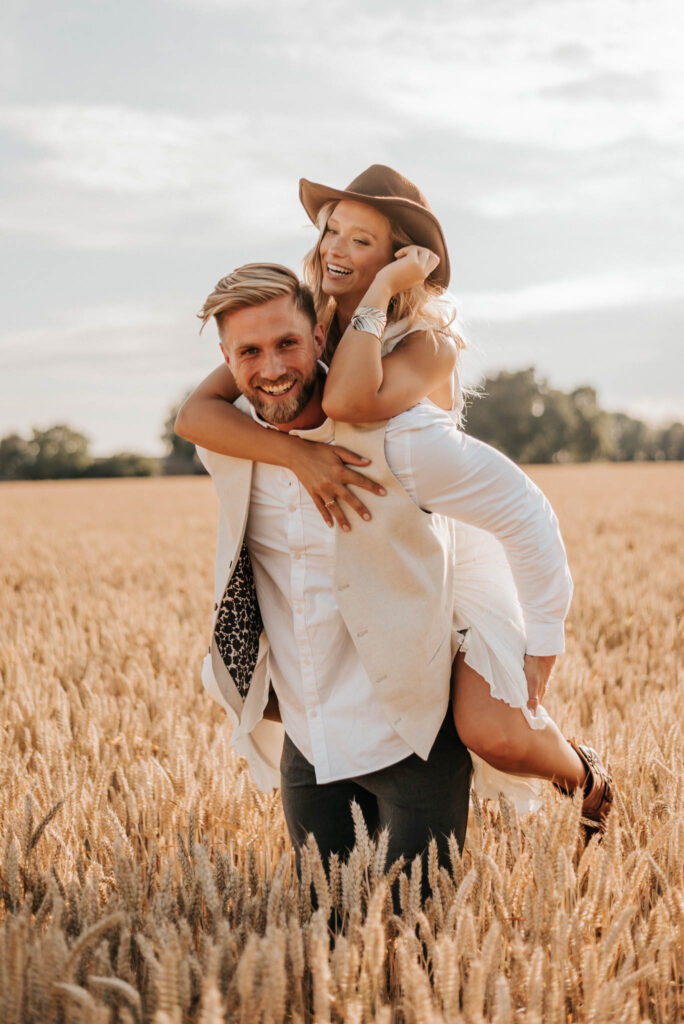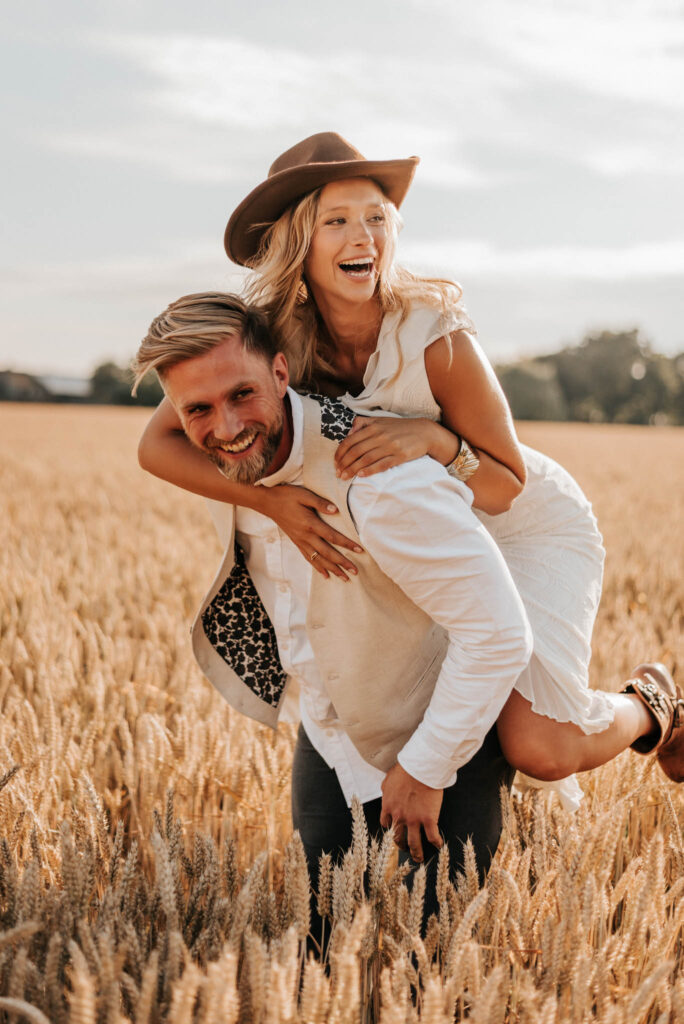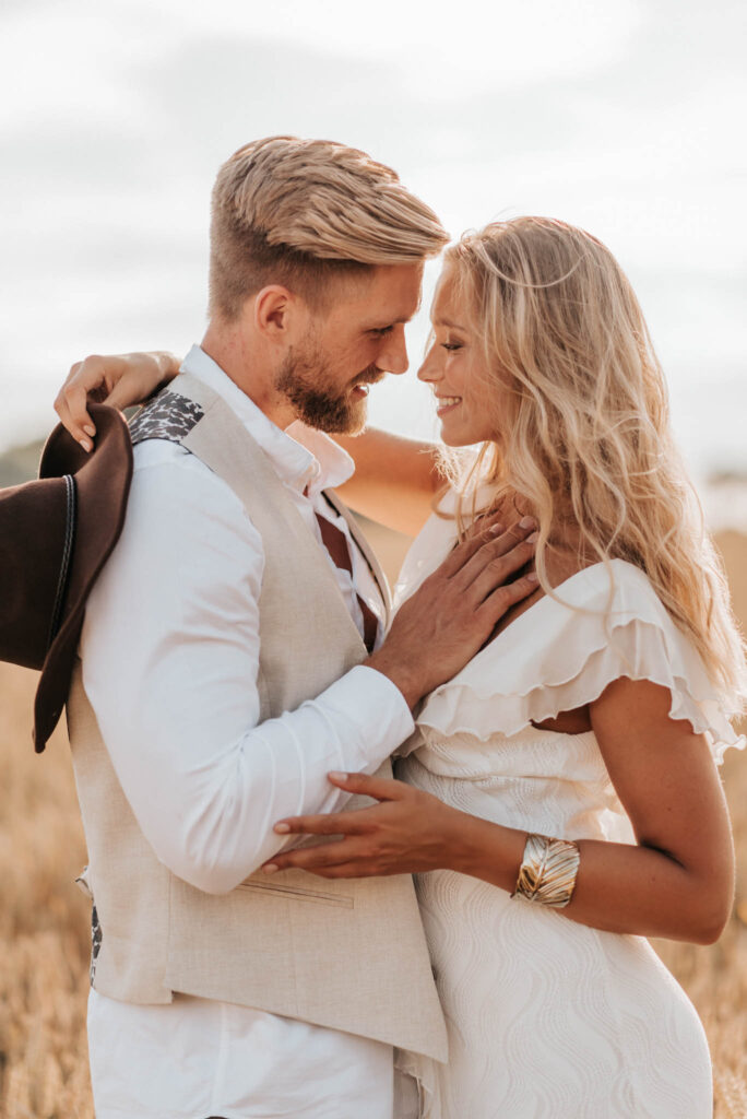 Unser Paar hat mich und das Team nicht nur an ihrer Liebe teilhaben lassen, sondern auch an ihren Vorstellungen, die wir mit diesem Shooting und jeder Menge Spaß umgesetzt haben. Vor allem die Bilder auf der Koppel und dem Kornfeld sind Western-Romantik pur. Alles hat perfekt harmoniert, selbst die Pferde haben als Statisten einen tollen Job gemacht.