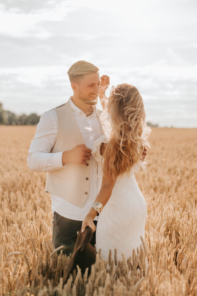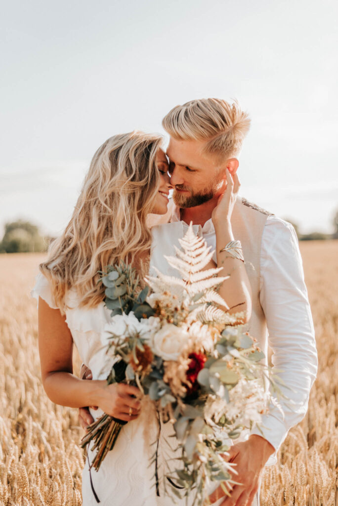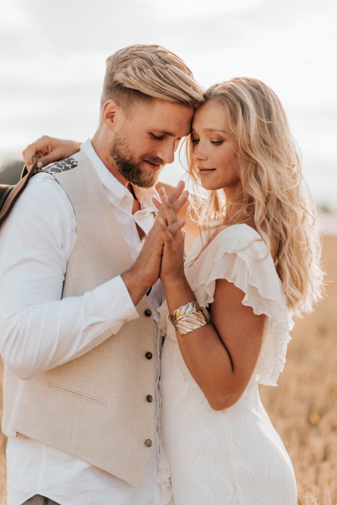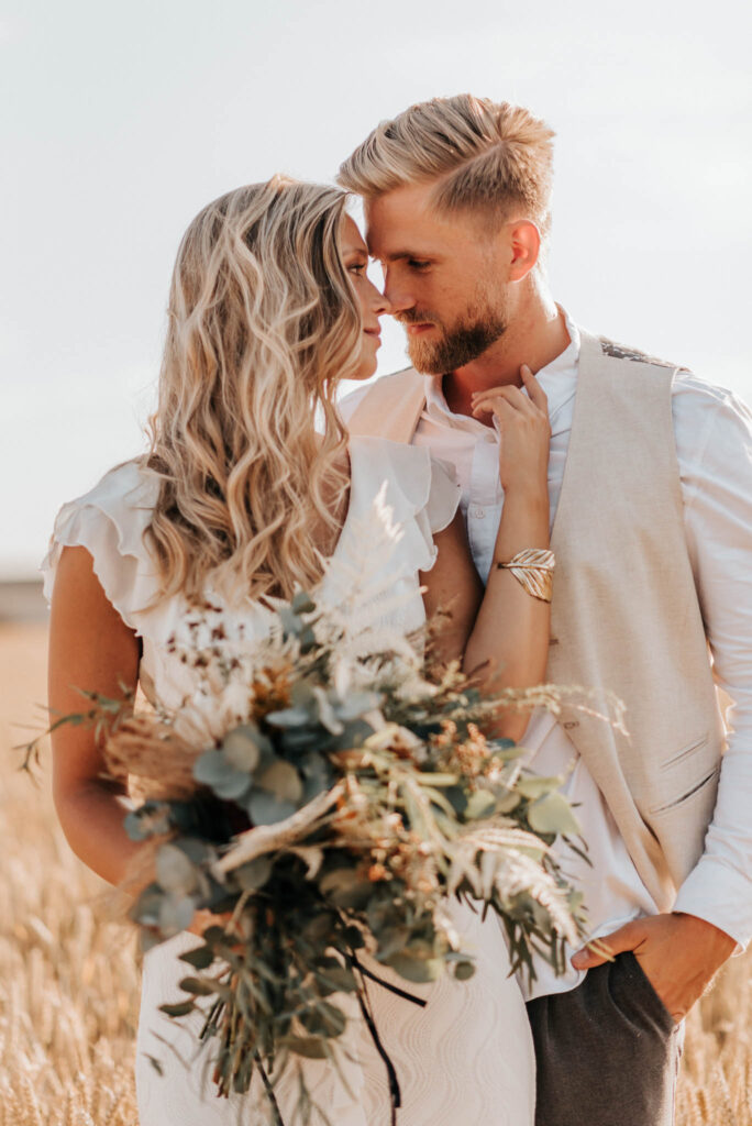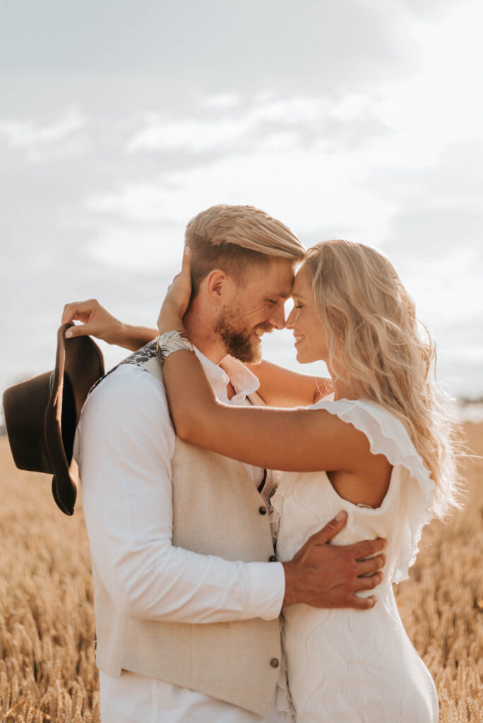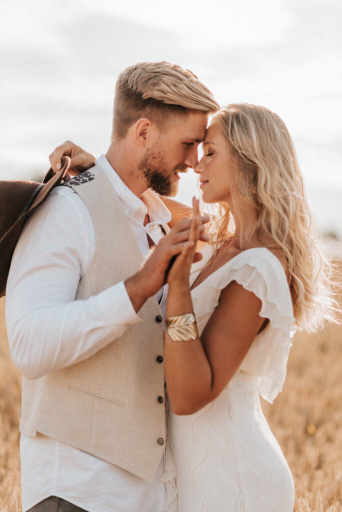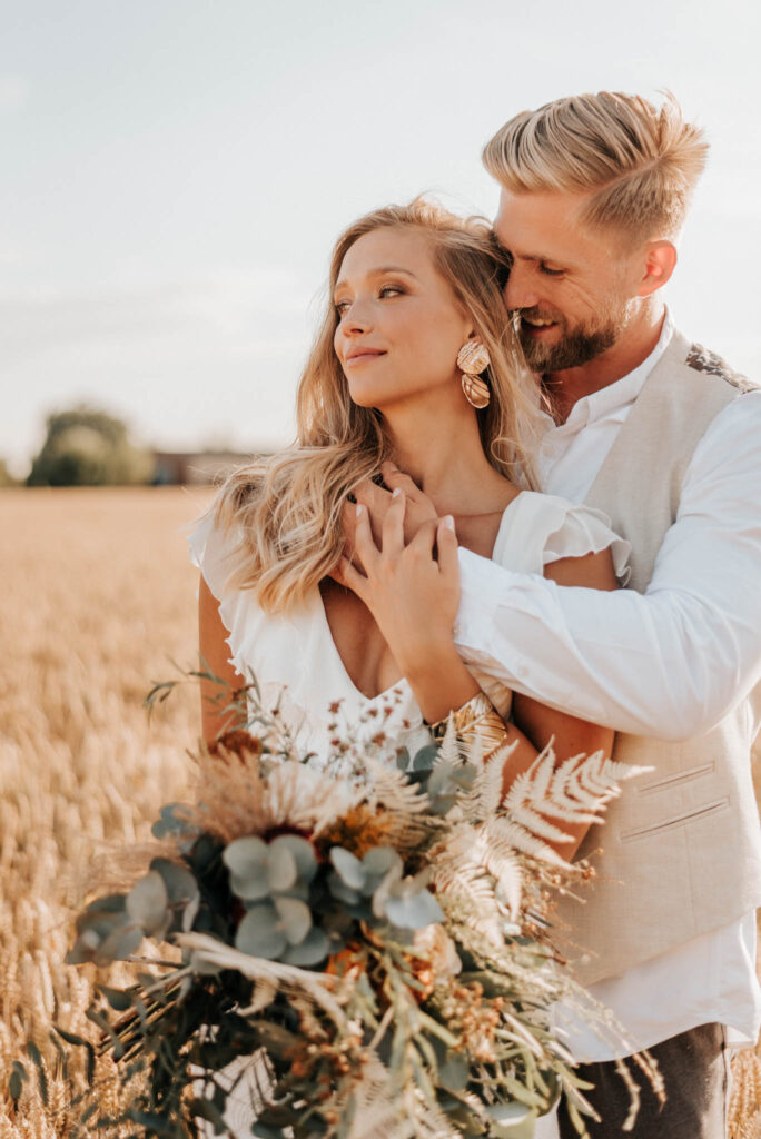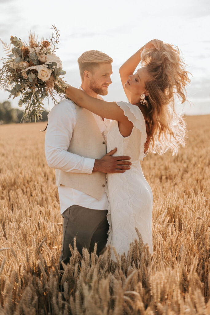 Unser Paar hat mich und das Team nicht nur an ihrer Liebe teilhaben lassen, sondern auch an ihren Vorstellungen, die wir mit diesem Shooting und jeder Menge Spaß umgesetzt haben. Vor allem die Bilder auf der Koppel und dem Kornfeld sind Western-Romantik pur. Alles hat perfekt harmoniert, selbst die Pferde haben als Statisten einen tollen Job gemacht.