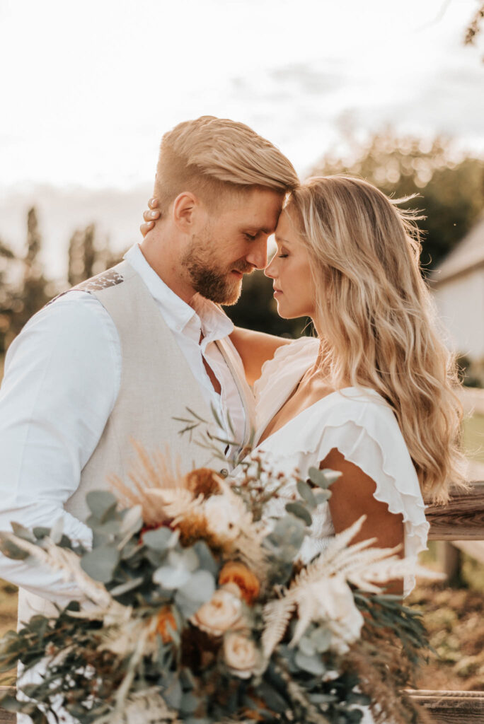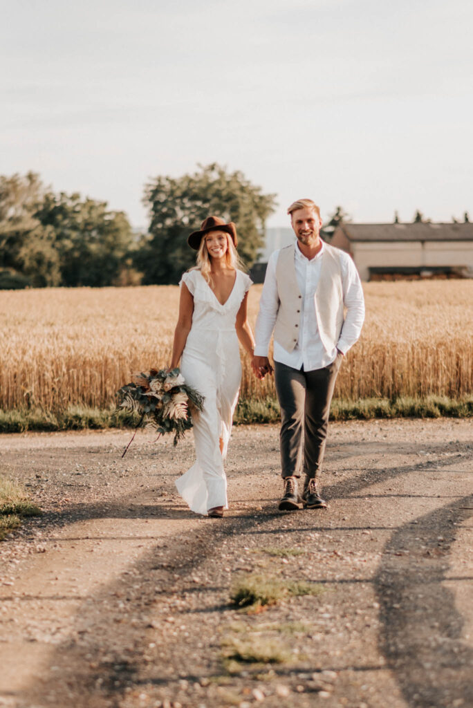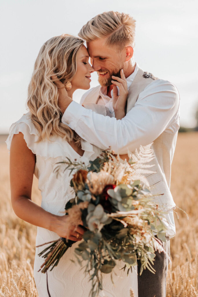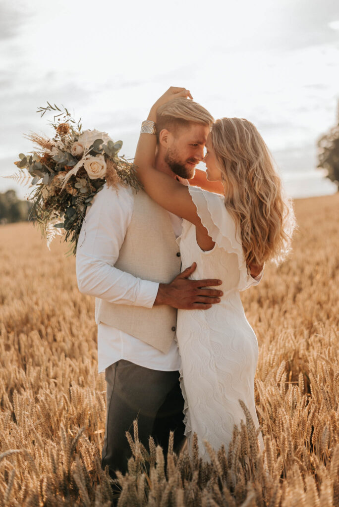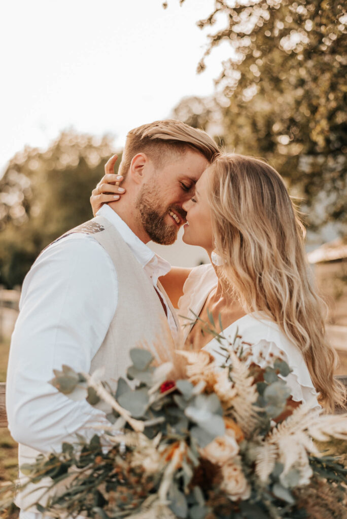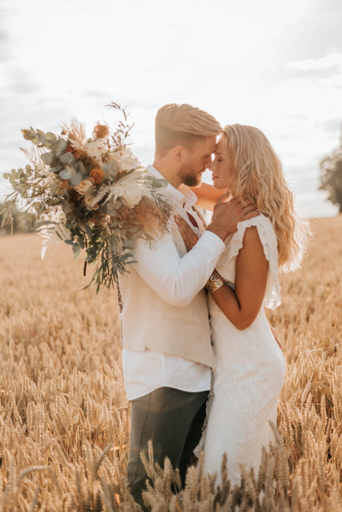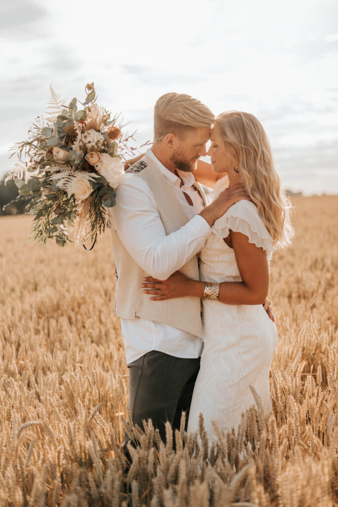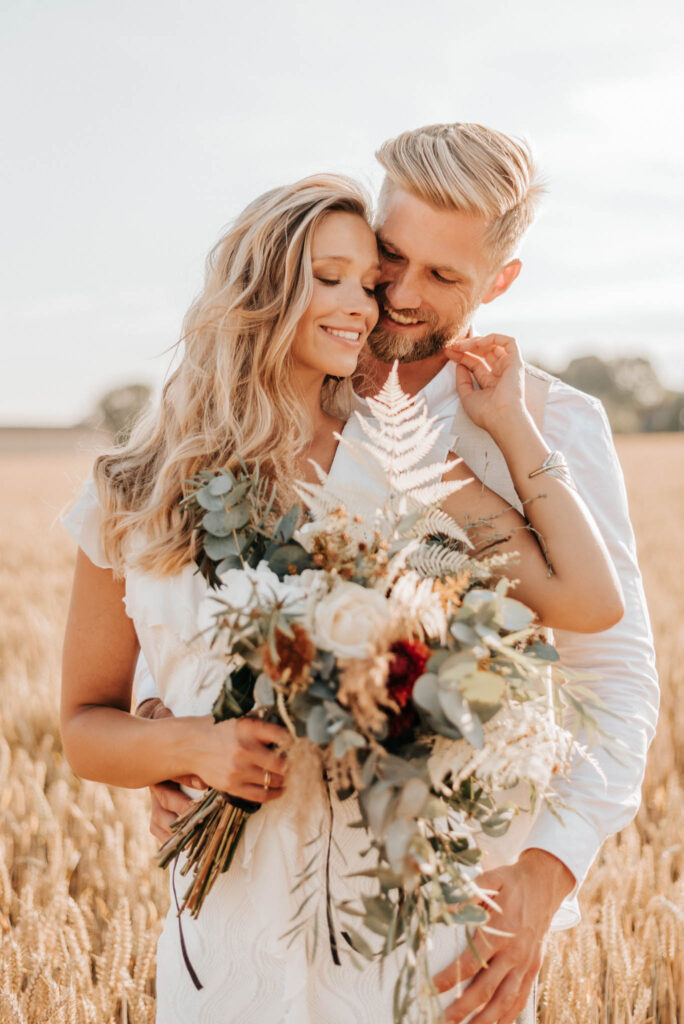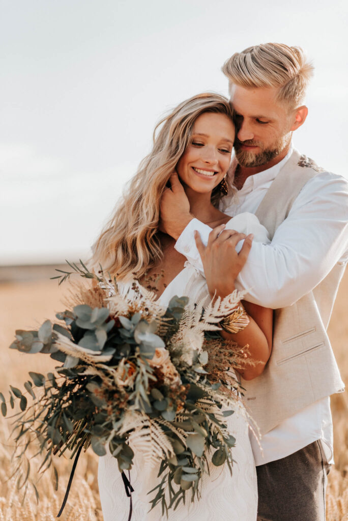 Unser Paar hat mich und das Team nicht nur an ihrer Liebe teilhaben lassen, sondern auch an ihren Vorstellungen, die wir mit diesem Shooting und jeder Menge Spaß umgesetzt haben. Vor allem die Bilder auf der Koppel und dem Kornfeld sind Western-Romantik pur. Alles hat perfekt harmoniert, selbst die Pferde haben als Statisten einen tollen Job gemacht.