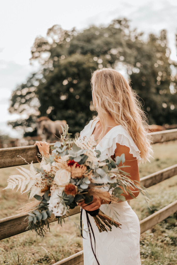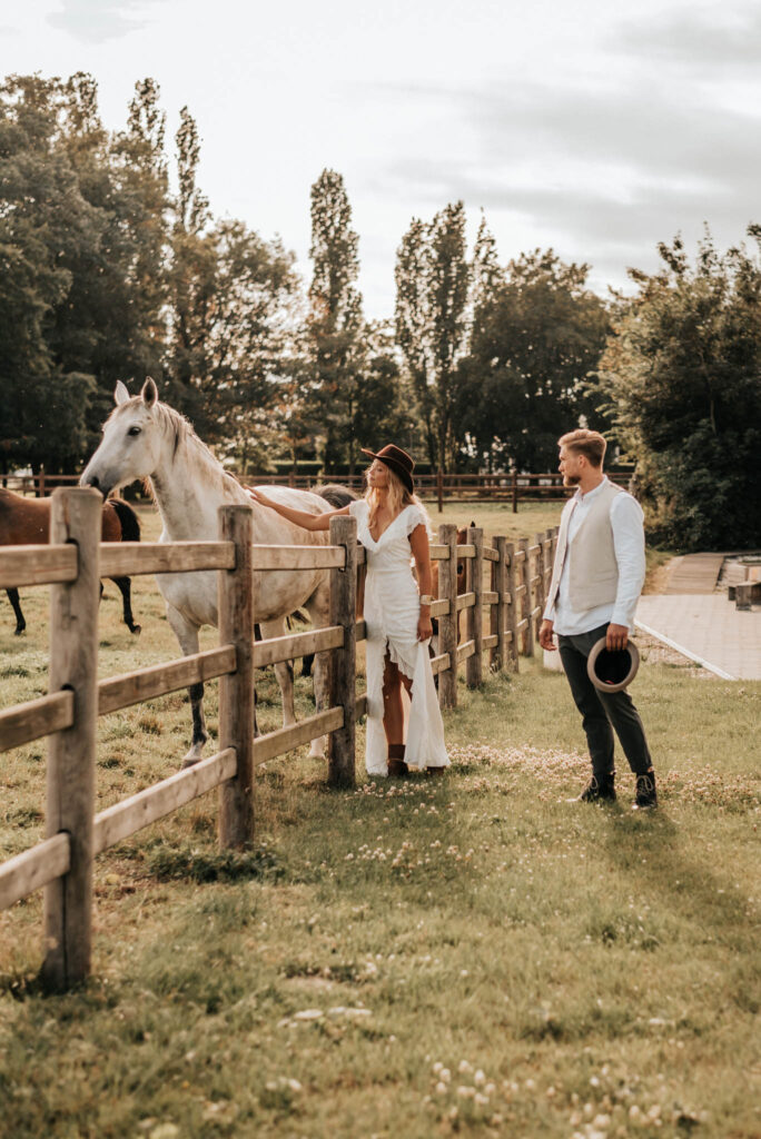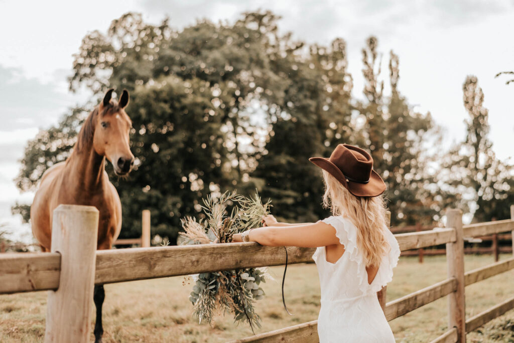 Howdy! Pures Country-Feeling gab es beim After-Wedding-Shooting auf Gut Hohenholz in Bedburg. Das es im Speckgürtel von Köln eine solche Locationperle für Hochzeiten gibt, konnte ich an diesem Tag und mit diesem tollen Paar erleben. Weite Wiesen und ein wunderschönes und großzügiges Gestüt waren die Kulisse für dieses „Boho meets Western“-Shooting.