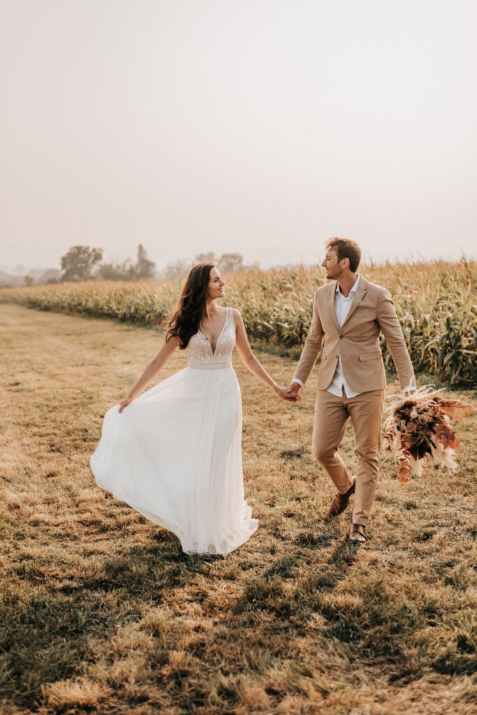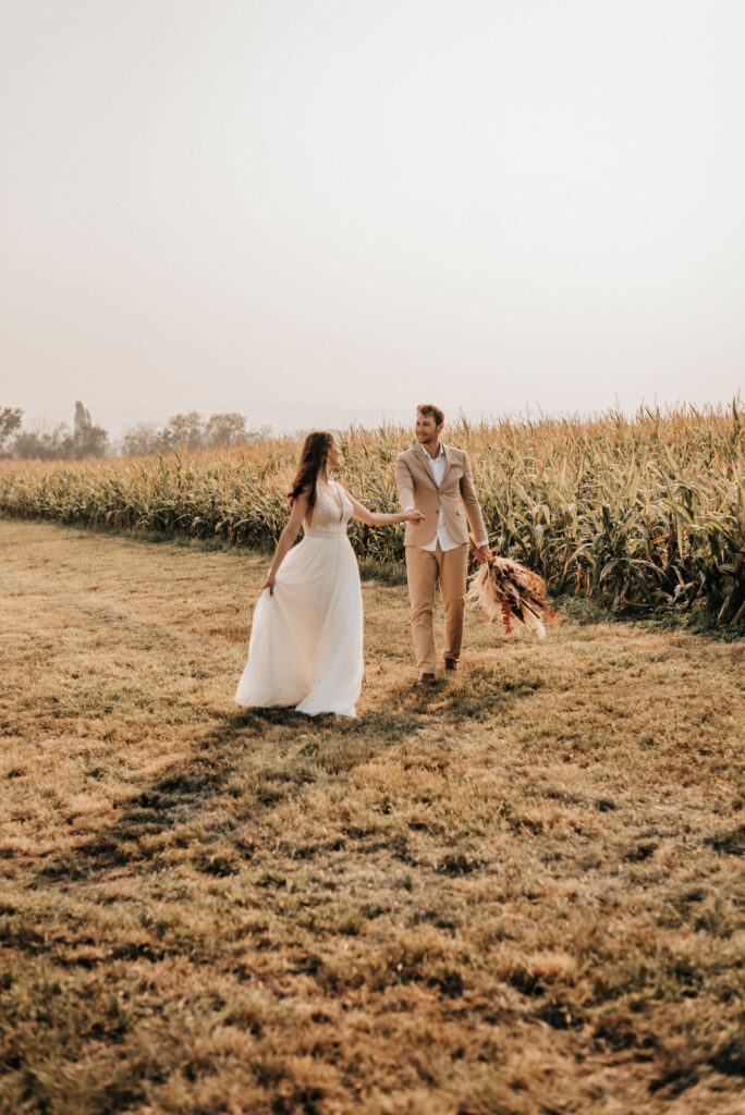 Das Paar und ich haben einen herrlichen Spätsommertag ausgesucht und während einer knappen Stunde Shootingzeit alle Möglichkeiten, die dieser Ort zu bieten hatte, für echte und leidenschaftliche Bilder genutzt.